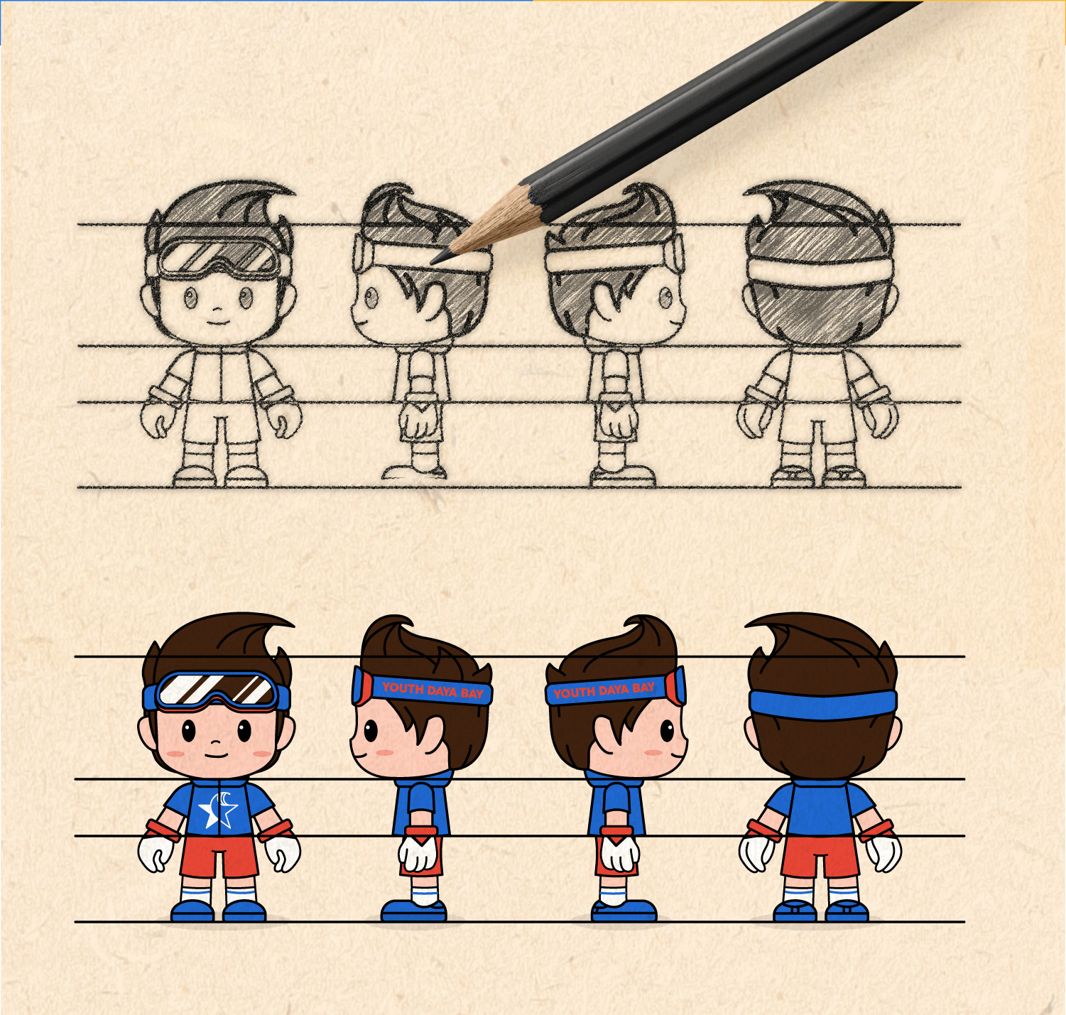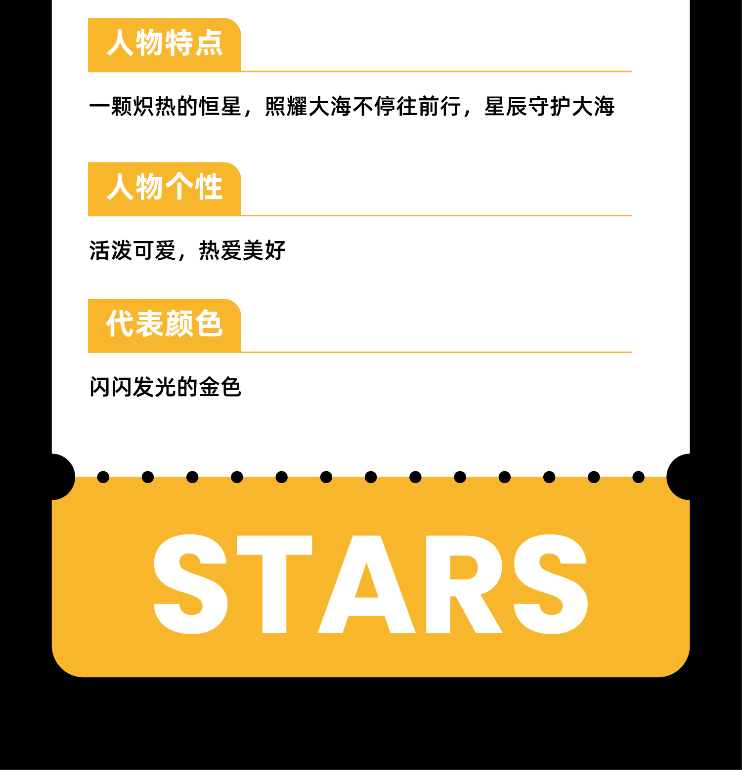 大亞灣區以海灣為名,整體的IP形象會以干練簡約的發型、服飾造型進行設計,將具有代表性的logo“星星符號”展現在人物身上,輔以其他工具,以“大亞灣紅”與“海的藍”作為主要的色調。用大眾熟知的面部元素、身形形態突出人物性格。